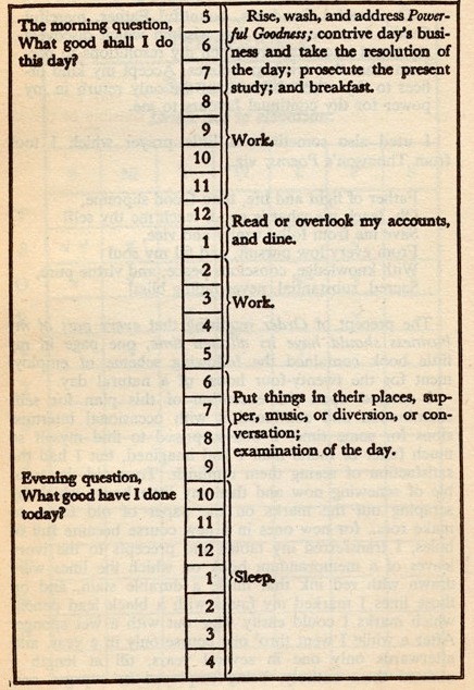 Categories Uncategorized Post author By danelabonte Post date 2013-09-20 Benjamin Franklin’s schedule Tags Benjamin, David Allen, Franklin, GTD, schedule, time management ← →