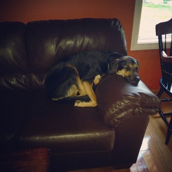 Categories Uncategorized Post author By danelabonte Post date 2014-08-14 Callie sleeping on the couch after a long day at daycare. Doesn’t look comfortable. ← Report: Military-grade weapons among Ferguson police arsenal →