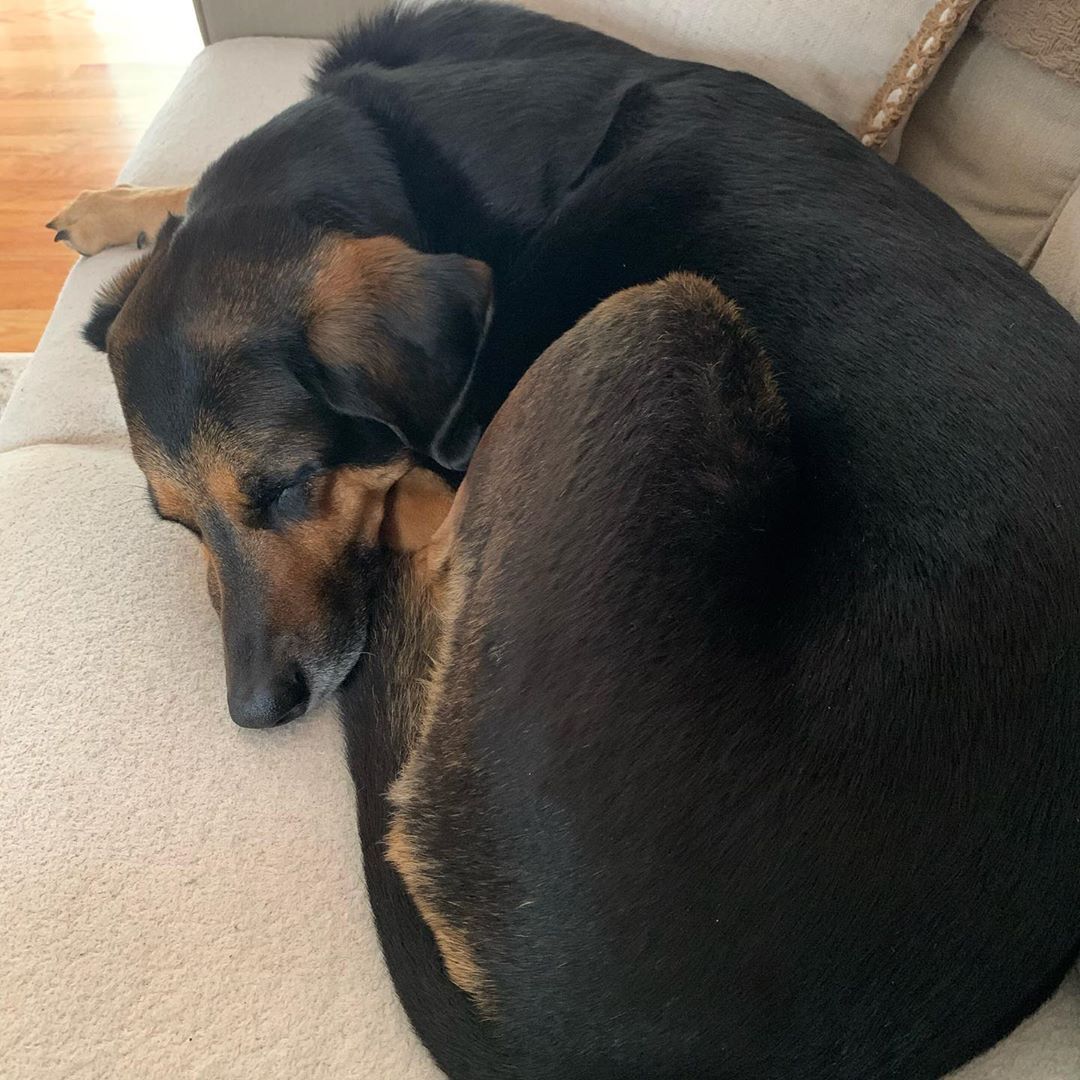 Callie taking her morning nap next to me on the couch during this cold and rainy morning