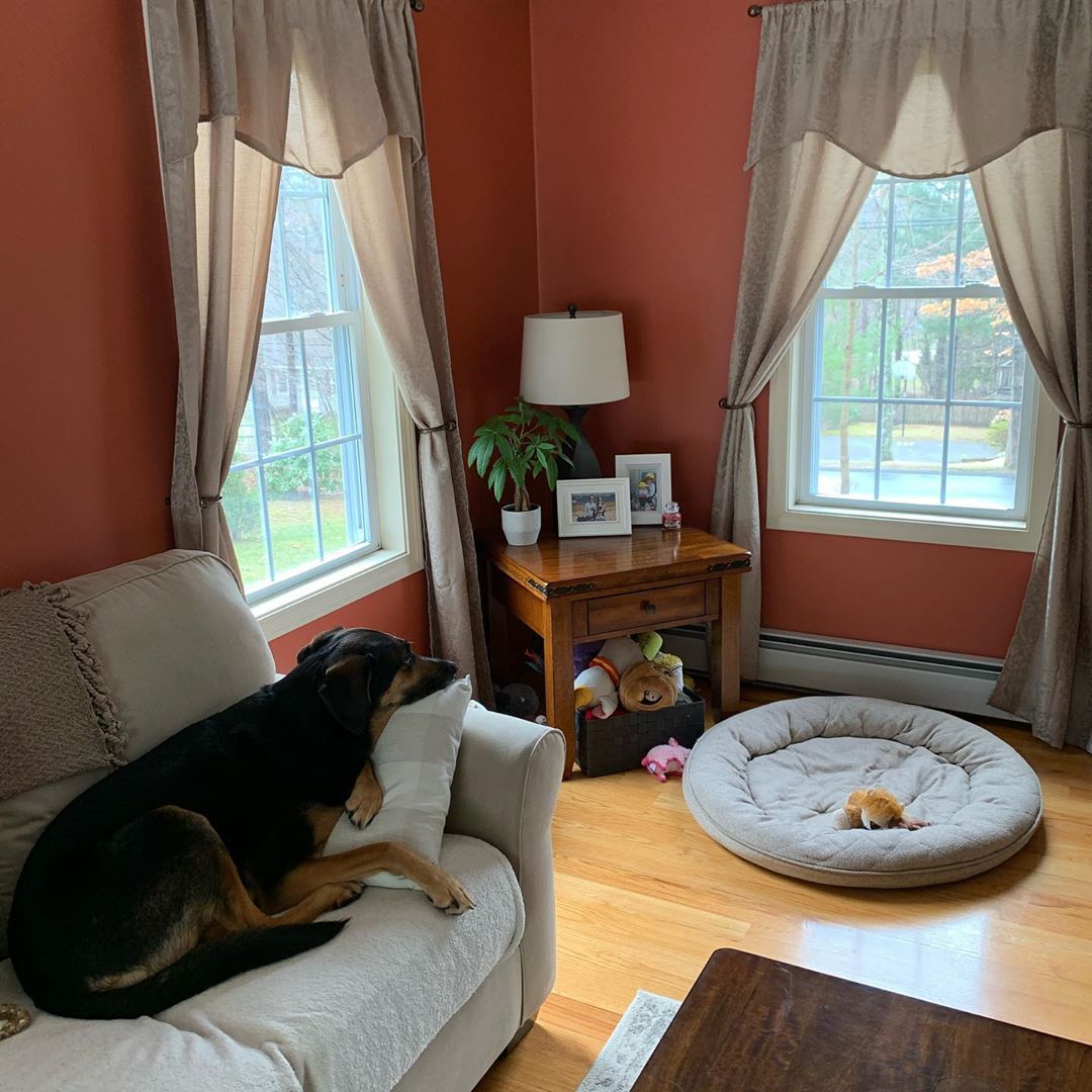 This afternoon Callie migrated to the other end of the couch to use the arm rest and pillow to comfortably survey her domain out the windows.