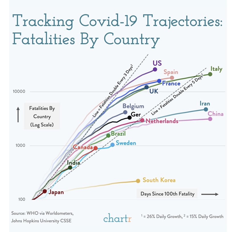 Categories Current Events Tracking COVID-19 Trajectories: Fatalities By Country Post author By danelabonte Post date 2020-04-15 ← Trump reverses course on power to ‘reopen’ states amid virus → China didn’t warn public of likely pandemic for 6 key days