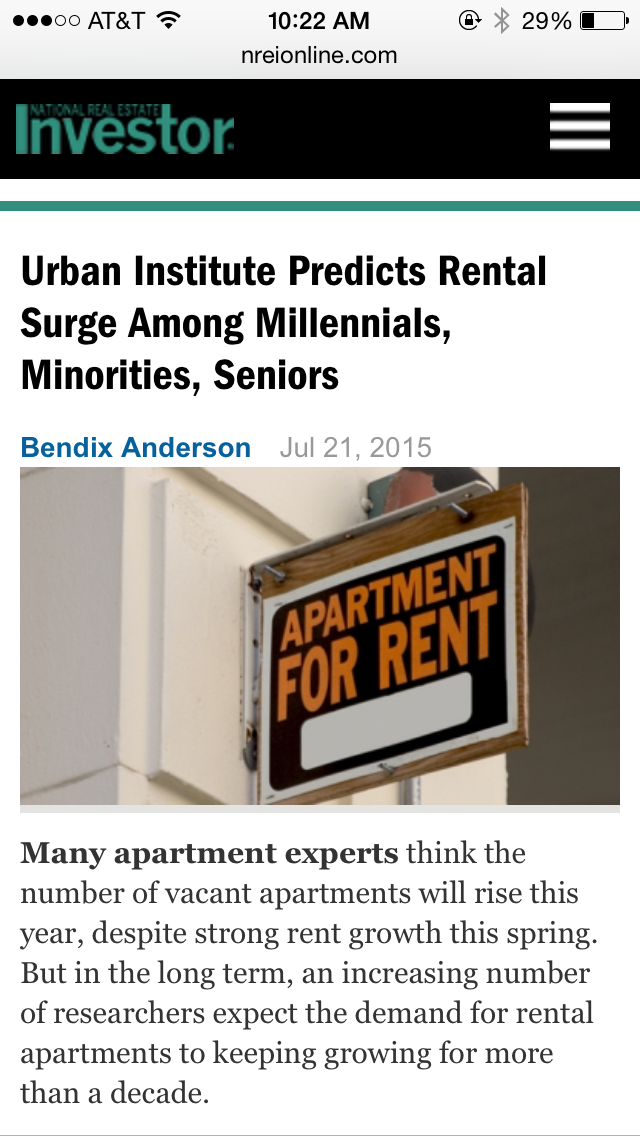 The market for apartment properties is likely to keep expanding. That’s despite the fact that the business of investing in apartments has already been in expansion for six years, since property prices hit their low point in 2009. No boom lasts forever, but the long, slow recovery from the financial crisis continues to bring new capital to multifamily real estate, which still provides relative high yields compared to other investments.