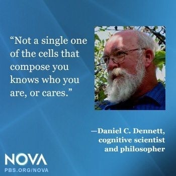 “Not a single one of the cells that compose you know who you are, or cares.” – Daniel C. Dennett, cognitive scientist and philosopher